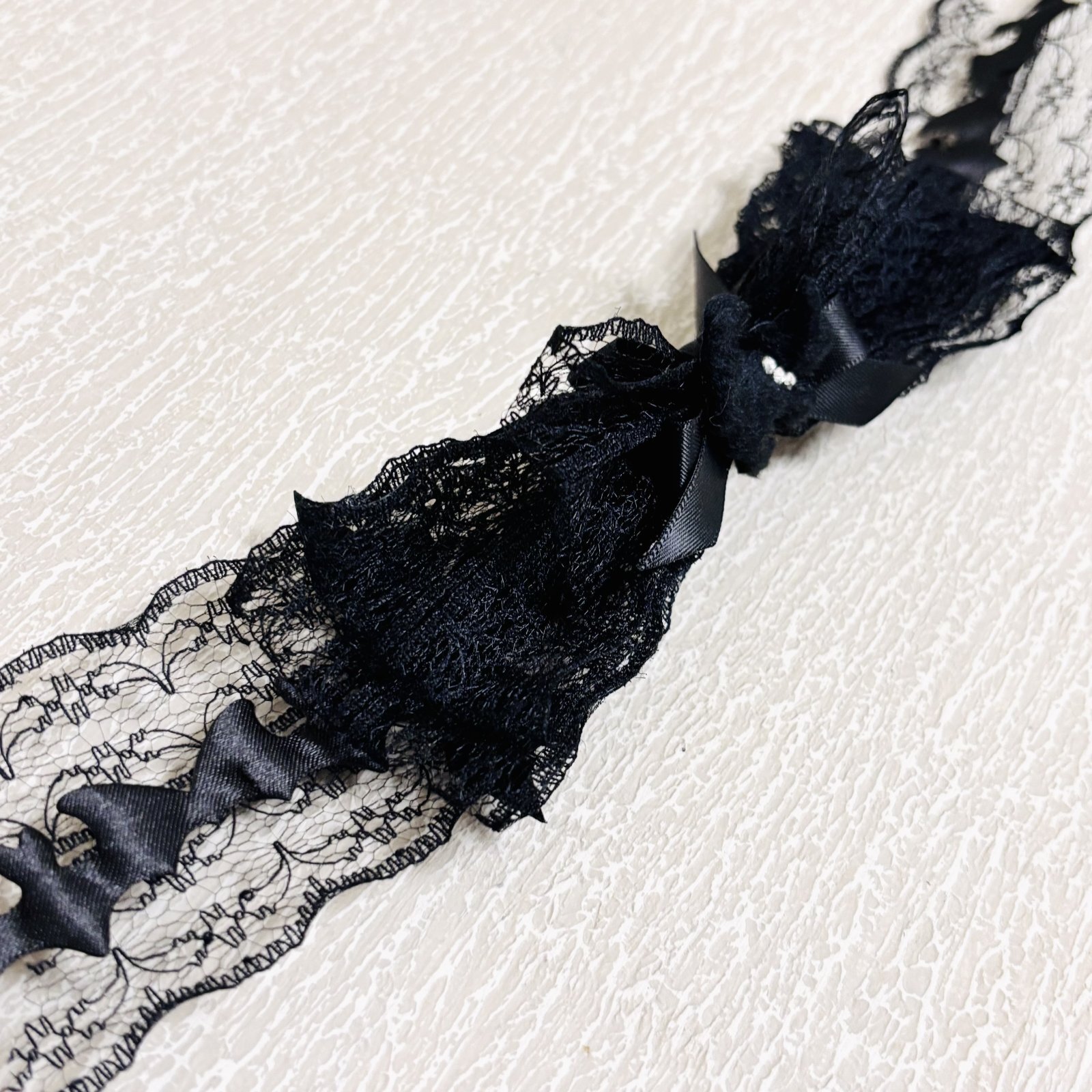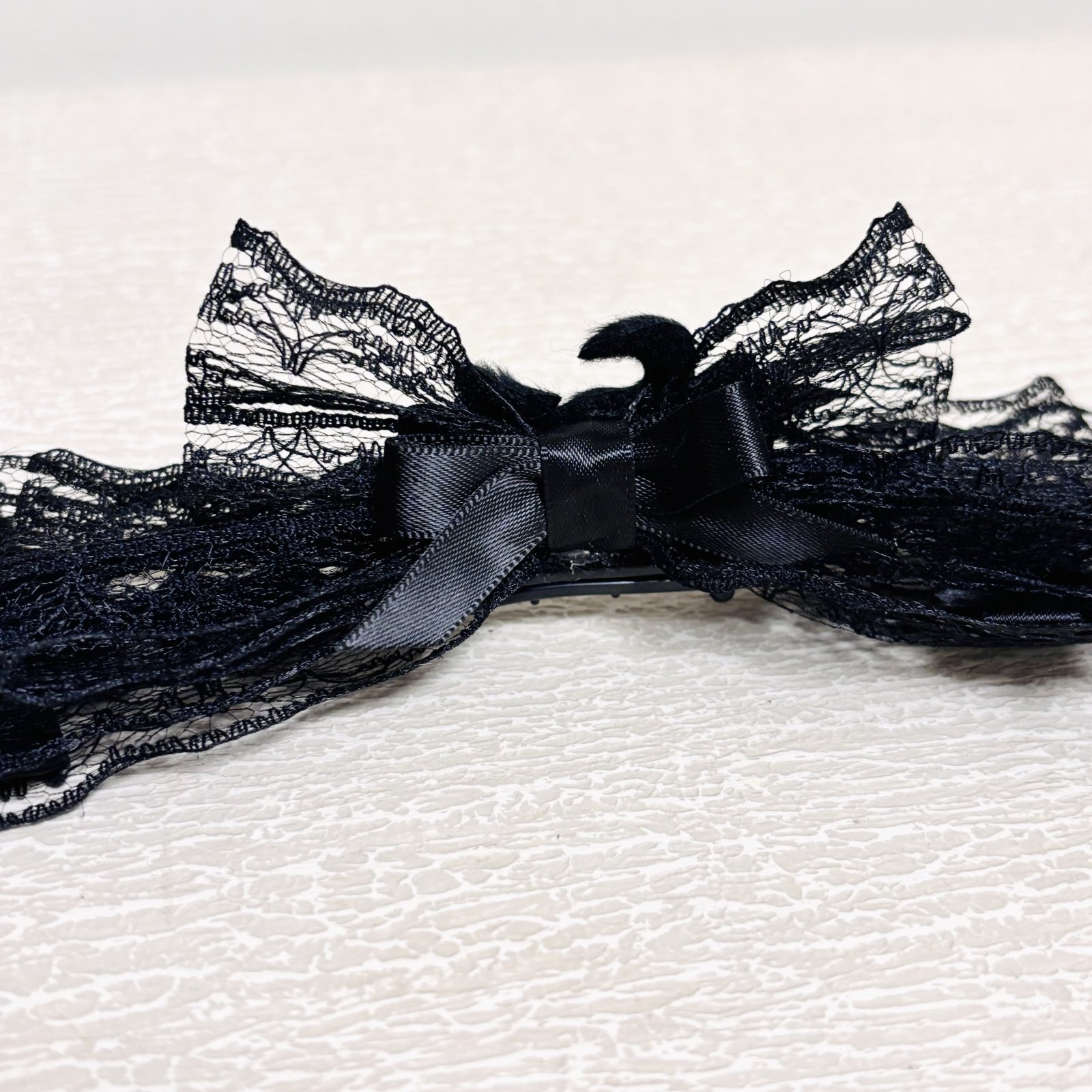 ホーム | リボン(バレッタタイプ) > ハロウィンリボン黒猫ヘッドドレス・黒レース×スワロフスキーラインストーン付黒猫×コウモリレーン(JDバレッタ)