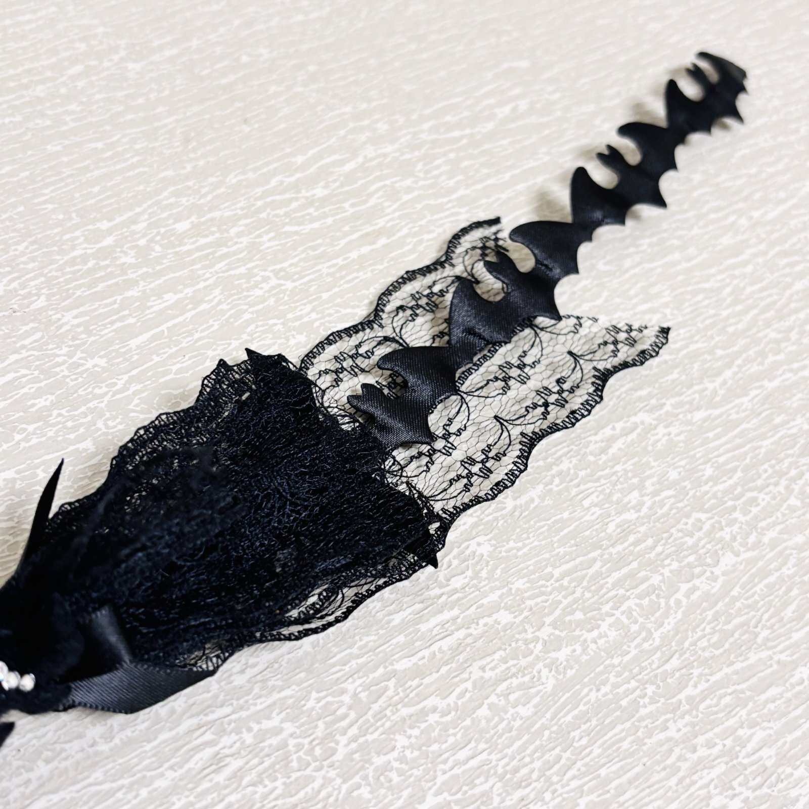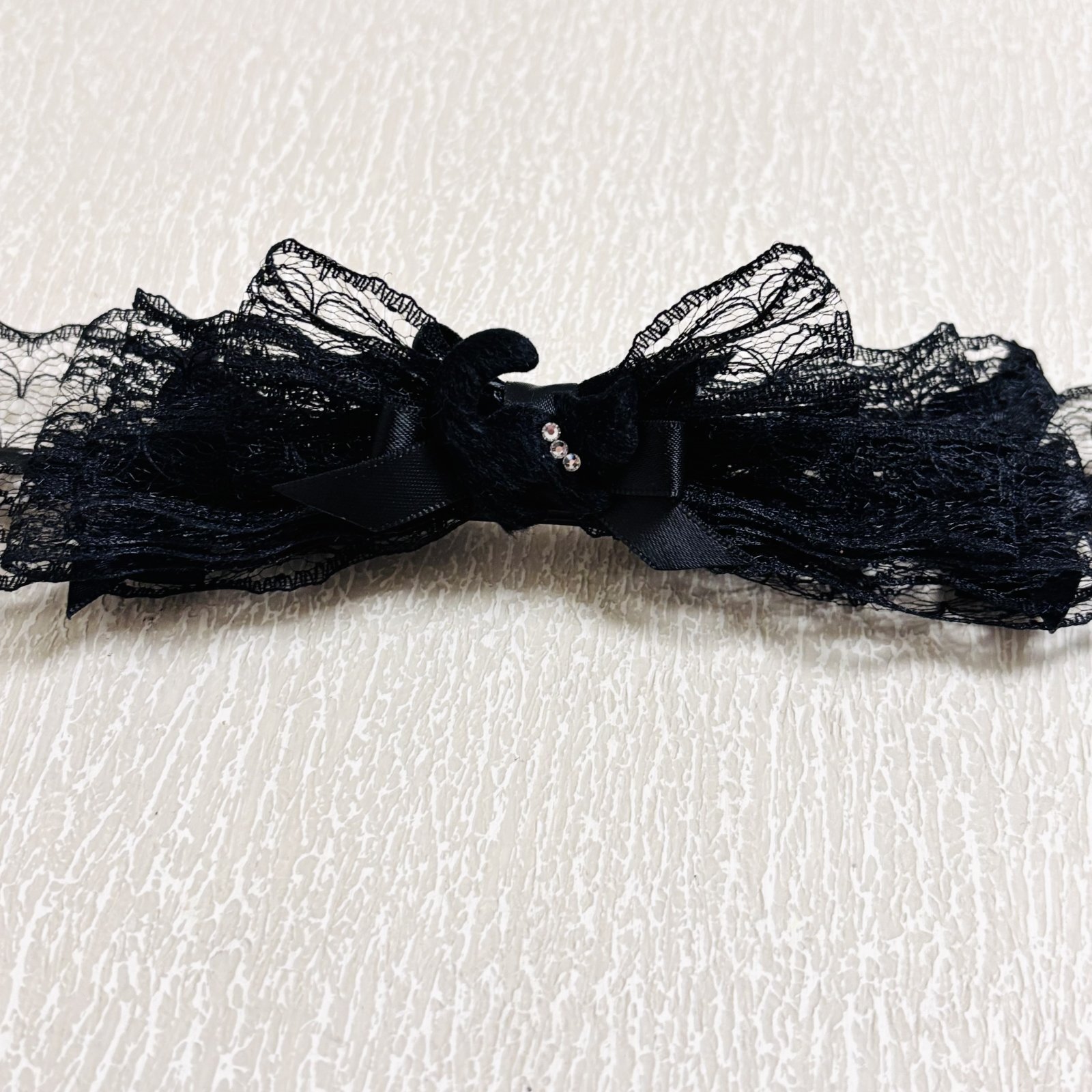 黒猫ヘッドドレス・黒レース×スワロフスキーラインストーン付黒猫×コウモリレーン(JDバレッタ)[u-s-206]