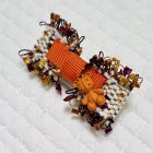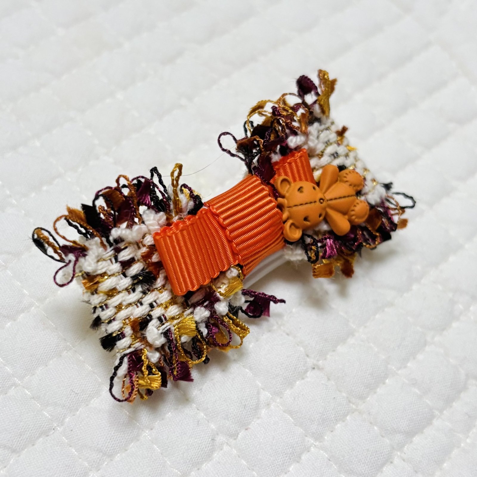 Wリボン・オレンジバーガンディ等秋色ツイードリボン×オレンジペタシャムグログラン&くまさんチャーム(JDバレッタ)[u-y-160]