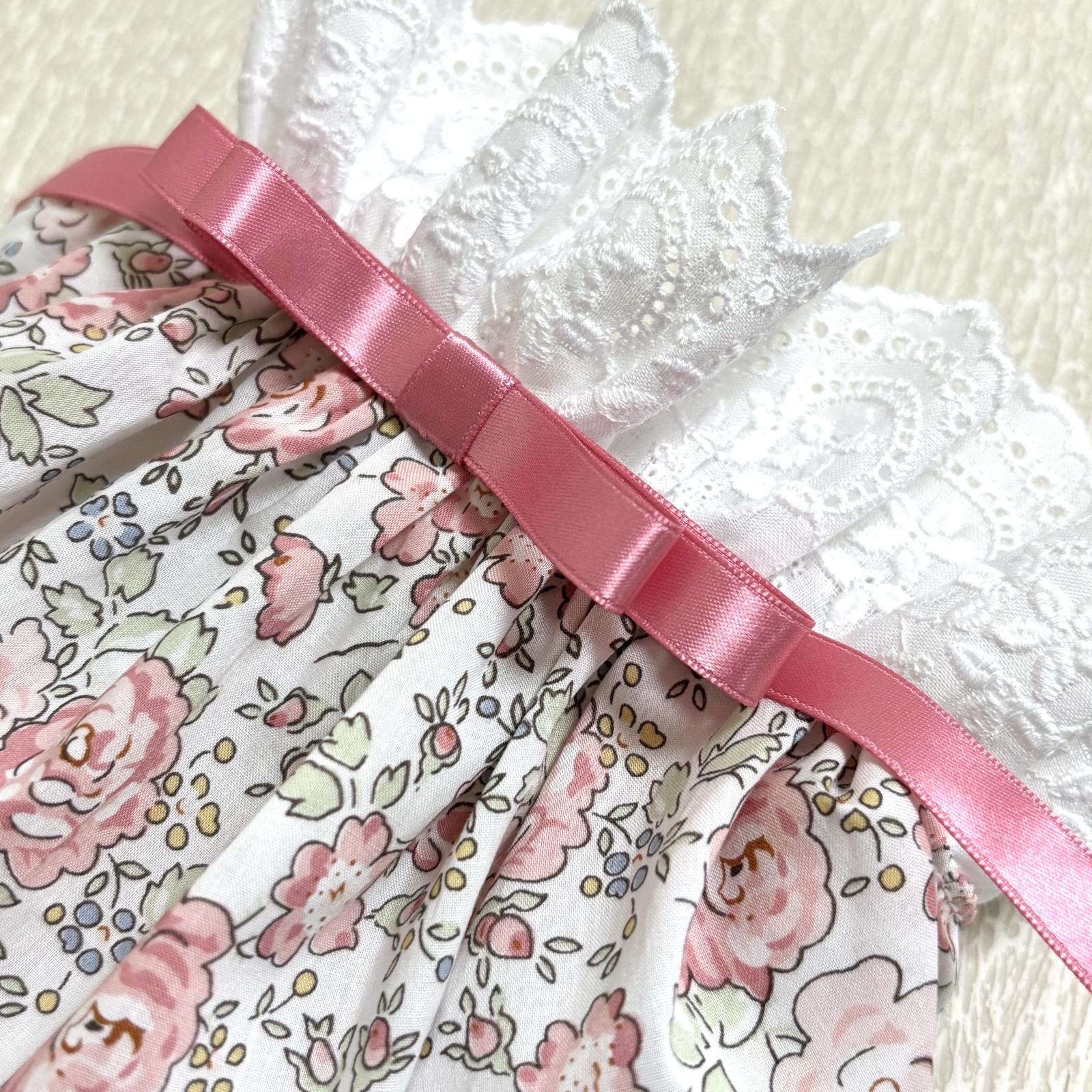 とても柔らかで滑らかな質感の生地に上質なスミレ模様のレースと光沢の美しいサテンリボンは日本製のものを使用いたしました(#^^#)♪
